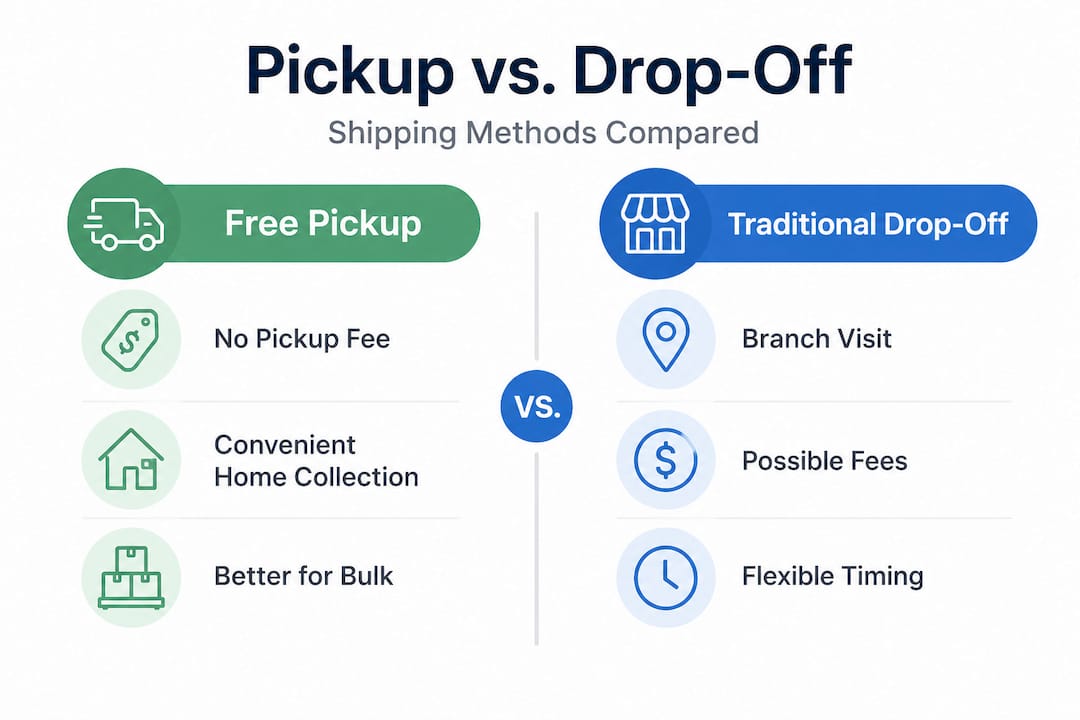 Traditionally, senders had two main options: drop their parcels off at a post office or courier branch, or arrange a paid pickup. Both options added friction. Drop-offs require you to travel during business hours, often waiting in line. Paid pickups were convenient but added a visible surcharge to your shipping cost, sometimes $5 to $15 per collection depending on the carrier and urgency.